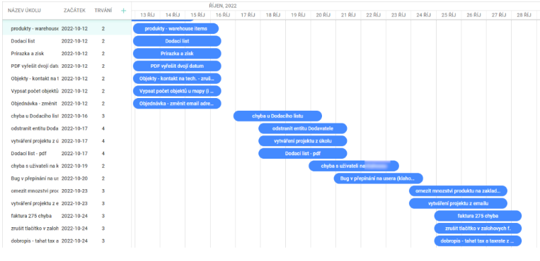 - Zobrazuje začiatok a koniec jednotlivých úloh v časovej osi